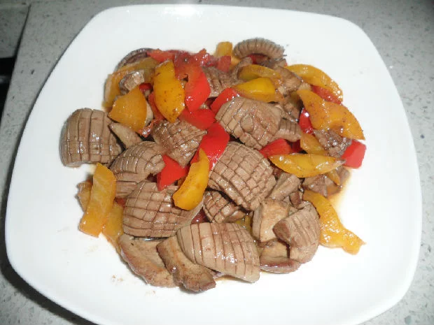 葱姜炝锅,下豆瓣炒香,将所有辣椒块倒入翻炒,放盐,点糖,下腰花继续翻炒,加鸡精出锅装盘。(炝锅的时候可以适当烹一点米醋,起到解腻去腥的作用)