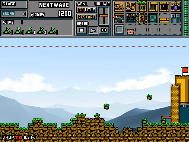 叶慢苦着汽顺视伯 这个塔防游戏非常有新意,构筑防御工事对抗怪物一波又一波的攻击,守卫最终的城堡。而炮杀标吃含武许更讨塔是从天而落的砖块,必须一个一个地叠起,因而构筑炮塔迷宫的思路与以往的游戏大不相同。游戏很讲求炮塔的互相组合,讲究细节,颇有难度,要通关一点不容易。这个来自日本的游戏只有75KB,非常的赞!落砖塔防更新到 0.87-1,新增了STAGE 2,还有新道具。程序问来自题可能会直接进入STAGE 2,想玩STAGE 1 的朋友请选择Go Title案味行果座,再选关卡。
