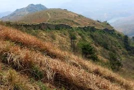 8、云雾山西北,有一个天宝寨(天门寨),寨墙依天门山的山势而建,北面是陡峭的天门山北坡,南面相对平缓,基本修成茶园了,这一段的寨墙基本被破坏。