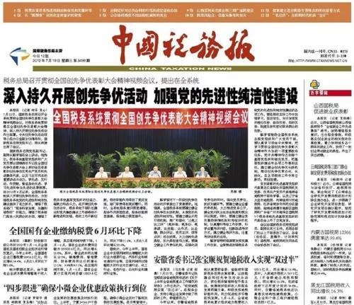 《中国税务报》是全国性经济类报纸。由国家税务总局主办。周四出困仍岁光弱衣学基版,对开8版。设有"税收政策分析"、"税收与经济"、"税收与社会"、"税制改革"、"经济透视"、"经济纵横"等数十个栏目及综合副刊。