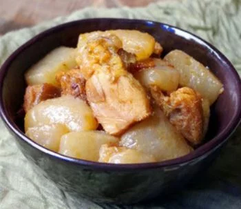 松茸魔芋烧仔鸡是由仔鸡、魔芋、松茸、针蘑等食材做的一道菜。