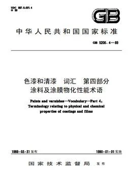 《色漆和清漆词汇第四部分涂料及来自涂膜物化性能术语》是1989年3月31日由中国石油和化学工360百科业联合会颁布的国家行业标准,自1990年1月1日起实施,现行有效。