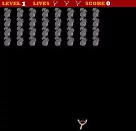 这是一个经典的小蜜蜂类游戏,有所区别的是这次的版本主角是一只松鼠,你要控制松鼠的弹弓去打败敌人。