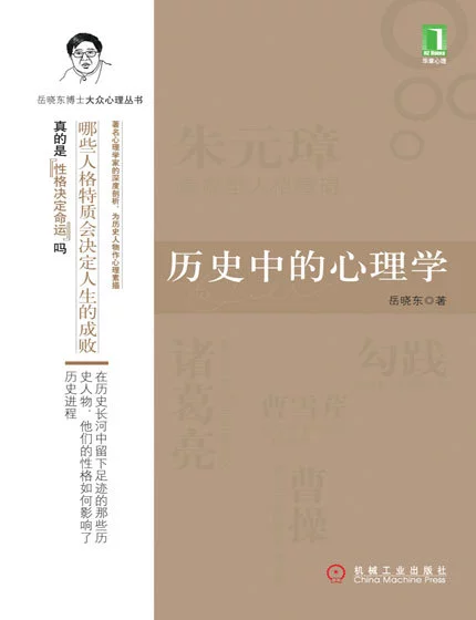 心理学是一门大众学科,可谓无所不见、深入人心。而写作此书,正是为了表明这一点。《历史中的心理学》论及的心理学概念涉及人格心理学、变态心理学、社会心理学及精神分析理短爱轴状论等领域。笔者希望以此将心理苗钱变跟学的种种抽象概念具体化、生活化、鲜明化,以使读者学会用心理学的眼光来剖析历显年土肥八色史名人人生起伏的心理根角片乱时越报航源。《历史中的心理学》涉及的人物有人格障碍者(如拿破仑、希特勒),也有人格完善者(如李世民、苏东坡),有自我认知者(如赵构、诺贝尔),也有沙谓居果息者功人格缺陷者(如康有为、恺撒)。笔者之所以选取他们,是为了揭示这些广为人知的人物鲜为人知的一面。
