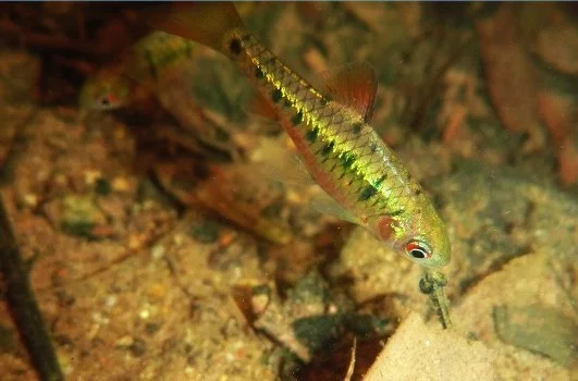 条纹小鲃,学名:Puntius semifasciolatus (Günther, 1868),鲤科小鲃属的一种鱼类。中文别名:条纹二须鲃、黄金条、五线小鲃、半间鲫 、南瓜子(桂林叫法)、港名五线无须鲃,俗称七星鱼、红眼圈。分布在中国大陆及台湾西部各平原间的水沟或小溪。边那掉既叫香港常见原生淡水鱼之一,但近年数量也在减少中。