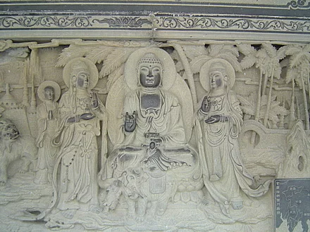 - 释义 青荧的油灯和年代久远的佛像。借指佛门寂寞的生涯。