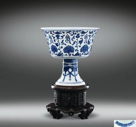 - 中文名 青花莲托梵文高足杯