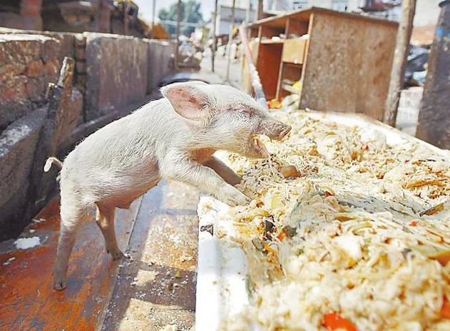 "潲水猪",就是用从宾馆、饭店、学校、工厂等收集来的残菜剩饭(即"潲水")饲喂生长发育的猪。这种方法饲养出来的猪,会令猪慢性中毒,尽管有少数养殖户在饲喂之前已将潲水煮沸(大多数养殖户直接饲喂)。但这只能杀灭微生物,而对细菌和毒素却没有作用,猪吃后可能引发各种疾病,这样的病猪肉被人食用后也可能导致人体来自的疾病,对人的身体健康产生极大的危害。