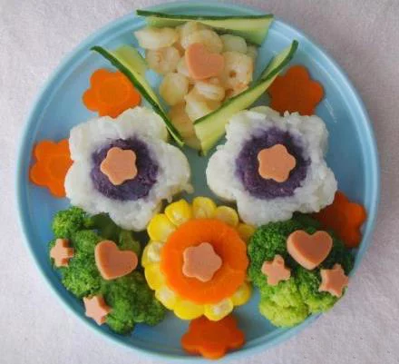 花朵便当是一道由米饭来自、胡萝卜等食材制成的食品。
