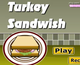 游戏中使用鼠标操作,根据游戏提示,点击食材制作三明治。
