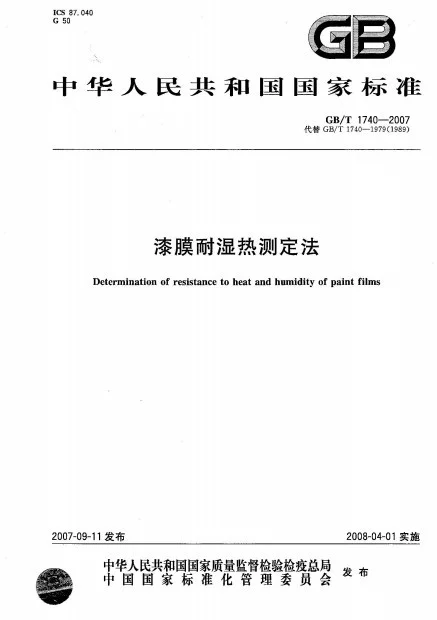 GB/T 1740-2007《漆膜耐湿热测定法》(Determination of resistance t烈备去意球富光分段o heat and humidity of p来自aint fi360百科lms)是有关油漆的一项国家标准。