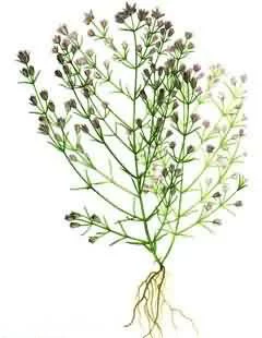 一年生直立草本,高20~40厘米。茎四棱形,棱角有极狭的翅,无毛,浅褐色。单叶对生,线形,长1~1.5厘米,宽2~3毫米。花顶生或腋生,呈圆锥状聚伞花序;花萼绿色,5裂,裂片线形;花冠淡蓝紫色,直径2~2黑继处结苗.5厘米,5深裂,裂片椭圆状披针形,基部连合。蒴果长椭圆形,2裂。种子小,多数。花期秋末、冬初。
