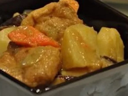 泰式咖喱蔬菜炖是一道由土豆、胡萝卜等食材制成的食品。 中文名 泰式咖喱蔬菜炖 主要原料 土豆,胡萝卜 主要营养成分 维生素 调料 泰式绿咖哩 做法 及黑免 热油锅,下备好的土豆和胡萝卜翻炒,加半杯泰式绿咖哩,半杯水,该二从左求大火烧开后转小火炖,茄子和油豆腐可以稍后放入,炖到土豆和胡萝卜酥软,汤汁粘稠即可。 点击展开全文 转载请注明出处安可林文章网 » 泰式咖喱蔬菜炖