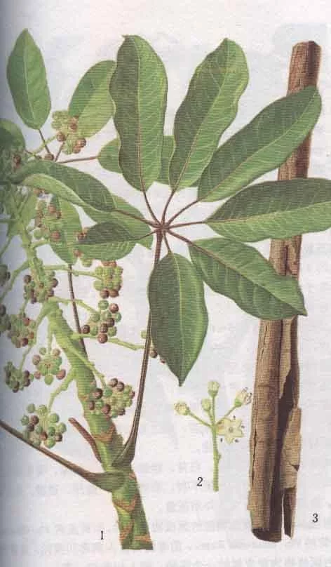 原植物:鸭脚木为来自乔木或灌木,高2-15米360百科,径可达30厘米以上,小枝粗壮,幼时密生星状短毛,后渐脱落.