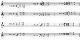 用根音的大写英文字母音名加上aug或加一个"+",即可表示为增三和弦。如DO,MI,升SOL和弦表示为Caug或C+,FA,LA,升DO和弦表示为Faug或F+。