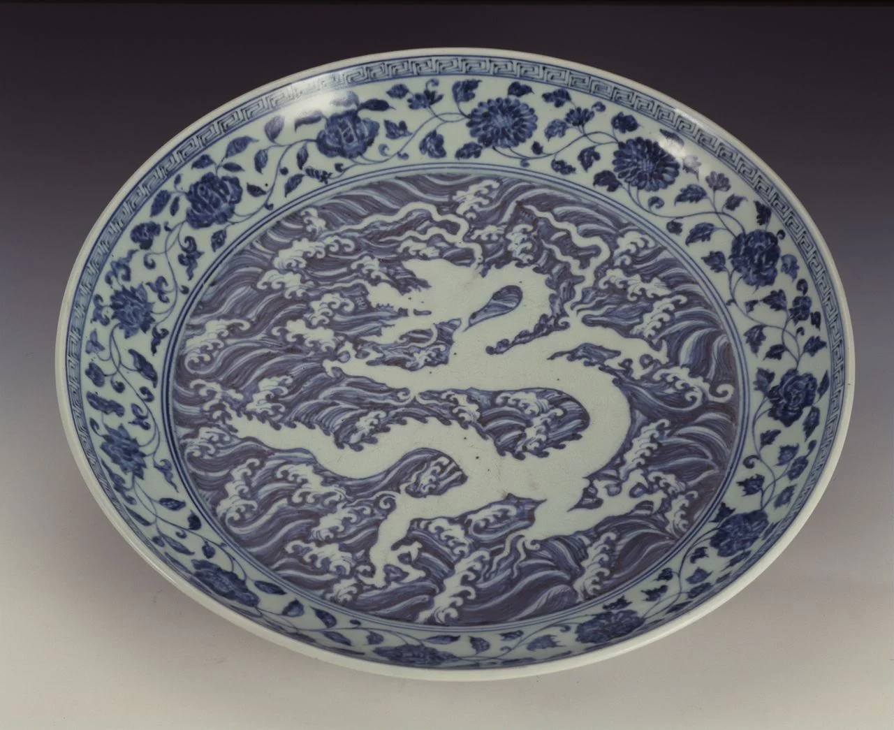 转载请注明出处安可林文章网 » 明宣德景德镇窑青花海水白龙纹盘