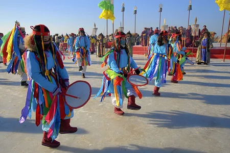 "蒙古秘史"第五十七节中说:蒙古人的安乐,就是舞蹈和饮宴。在推举浩特拉为汗时,在豁儿豁纳川的葳蕤大树下设筵席,众百姓皆大欢喜,绕着大树舞之蹈之,直把草地踏光,丘地践成深沟。可见蒙古民族在很早以前就有自己的舞蹈、戏剧等艺术了。