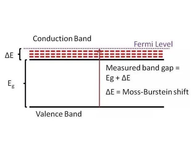 当半导体重掺杂时,费米能级进入导带,本征光吸收边向高能方向移动的现象称为Burstein-Moss效应。通常发生在半导体重掺杂时。