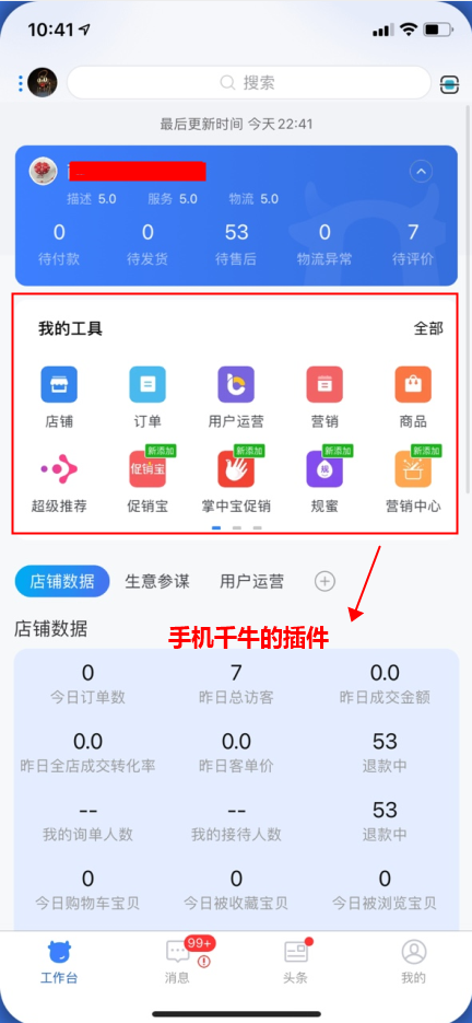 新版手机千牛正在灰测中,灰测到的商家使用新版手机千牛后,设置插件的操作步骤和老版本会有区别,具体操作如下: