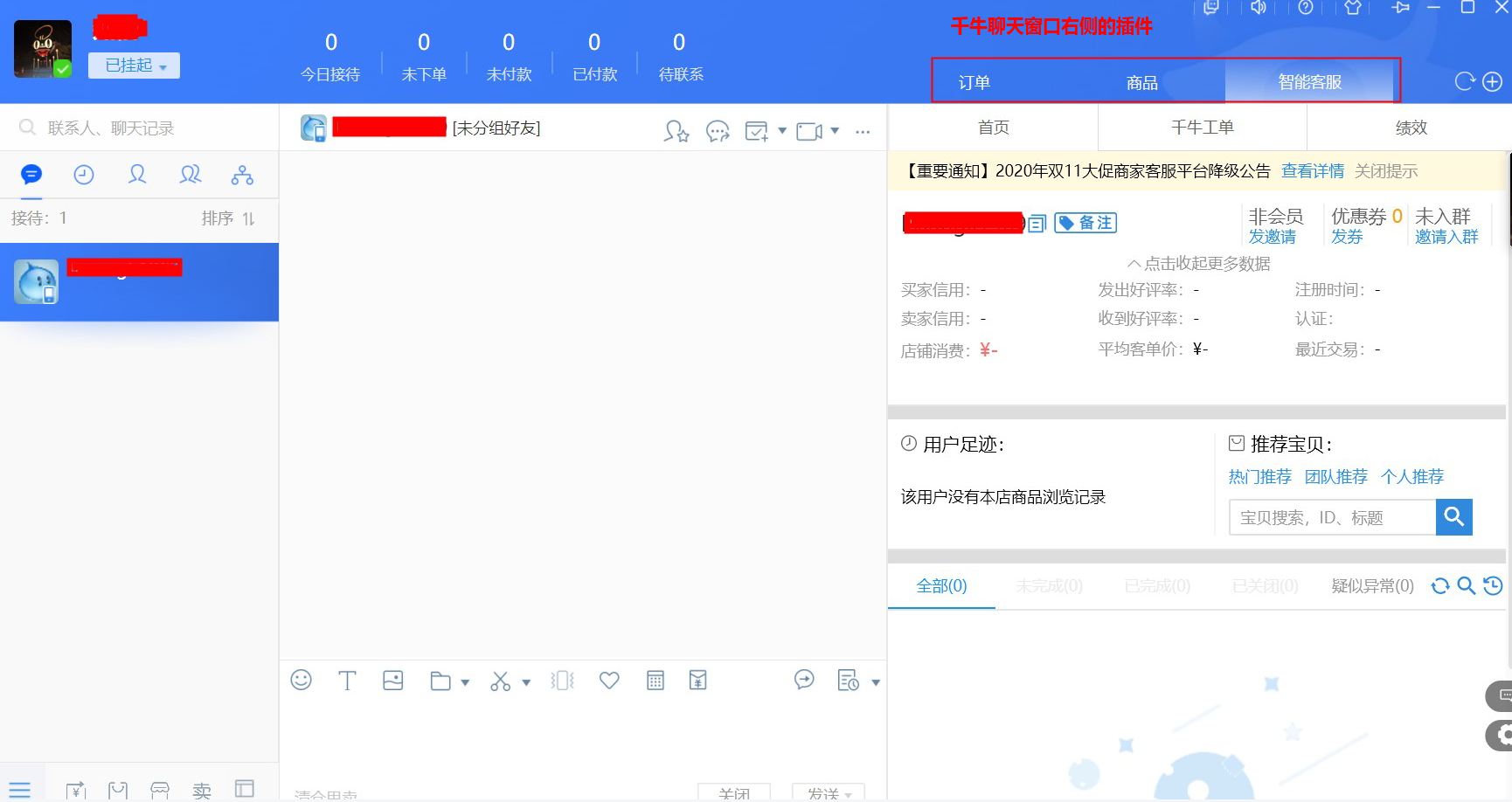 设置完成后,在千牛聊天窗口右侧查看订单、商品等信息就会使用该默认插件查看
