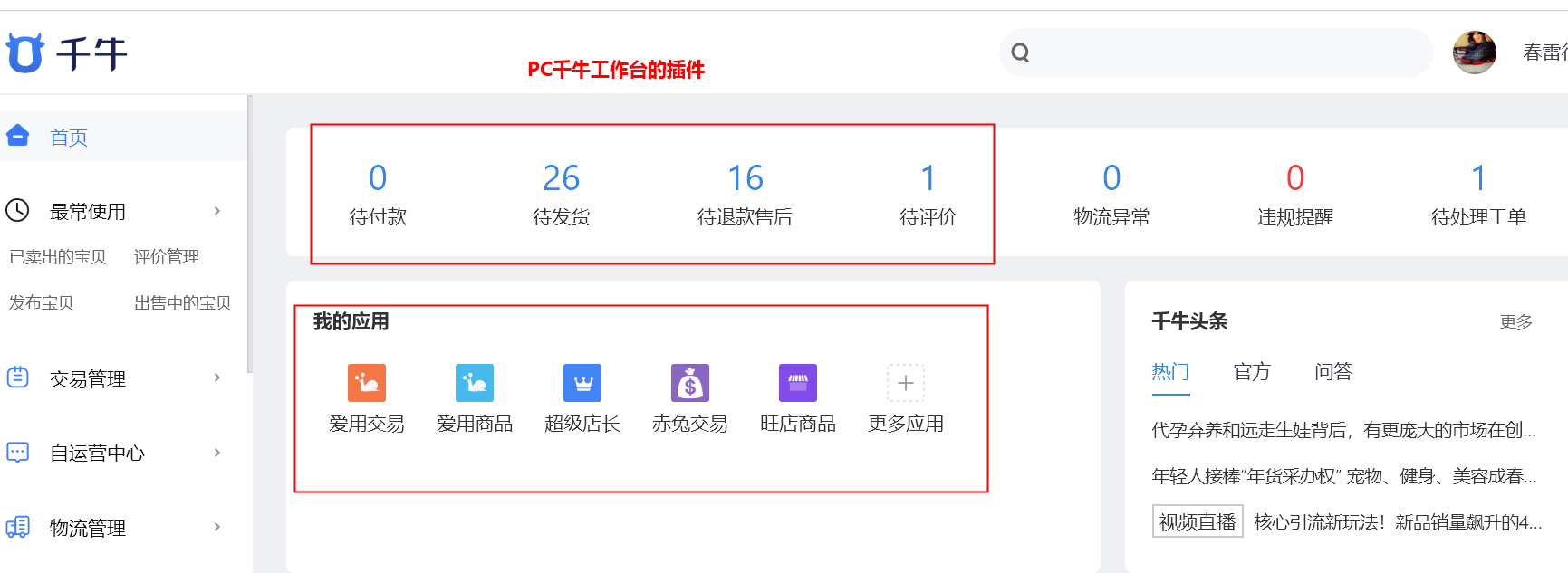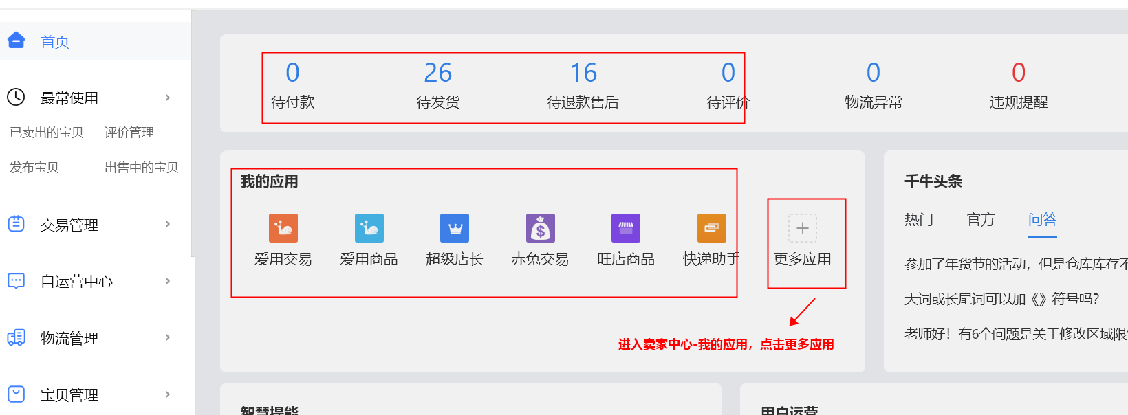 3.想要把一些常用的功能添加到千牛首页-我的应用模块,怎么操作呢?