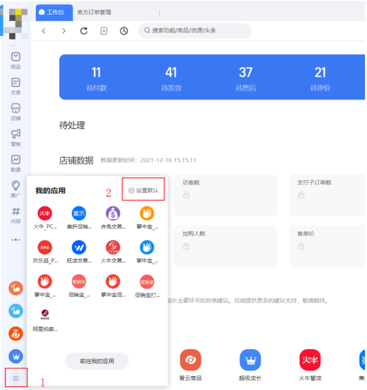 2.当在手机千牛、PC千牛工作台上点击待发货、待付款等,老是跳到某个第三方插件,怎么更换呢?