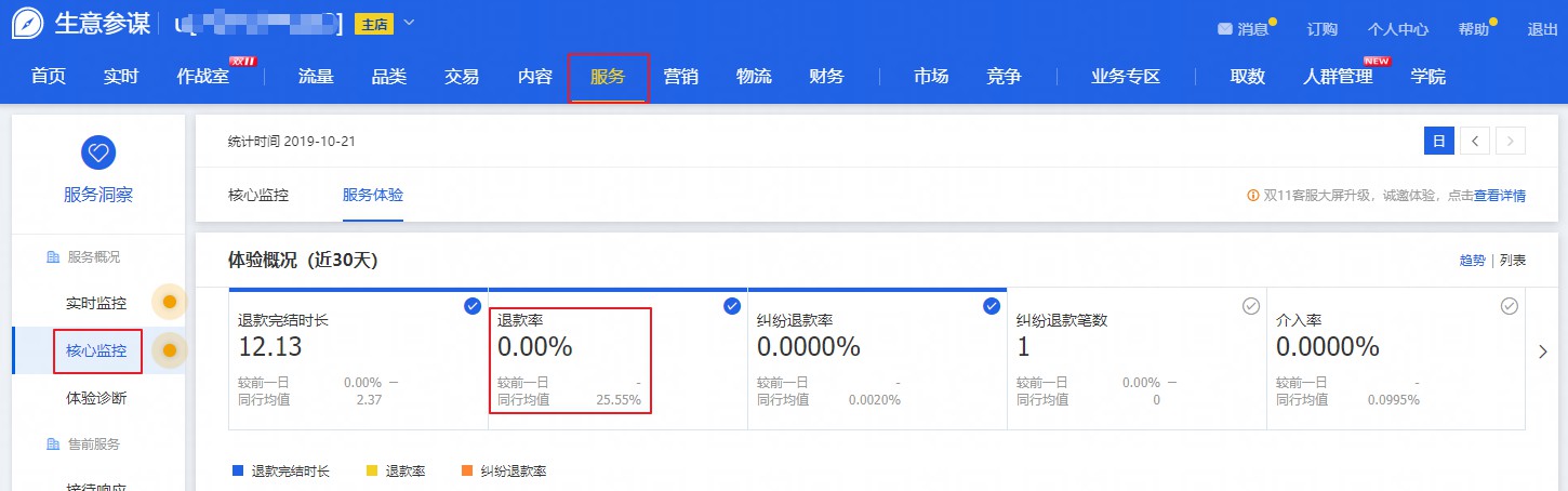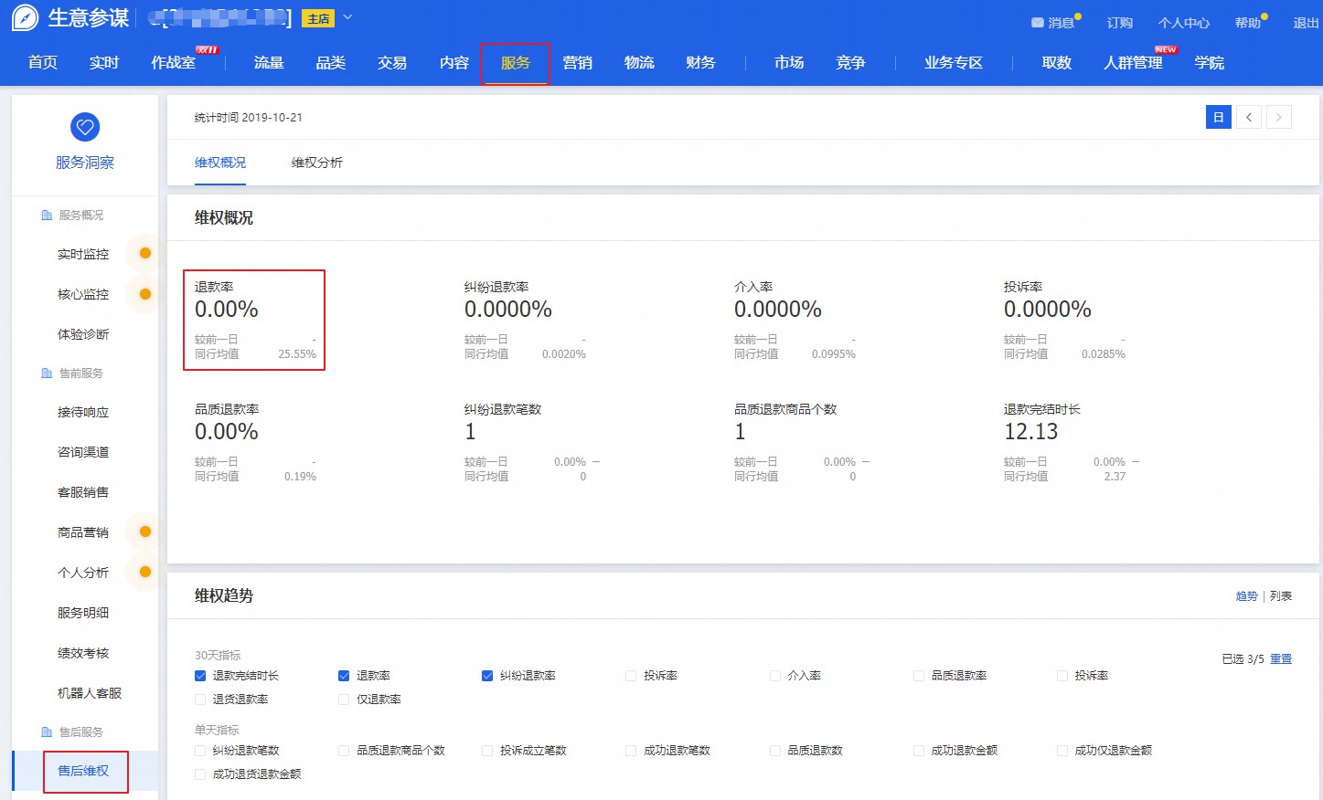 -服务-售后维权中查看店铺的退款率数据哦