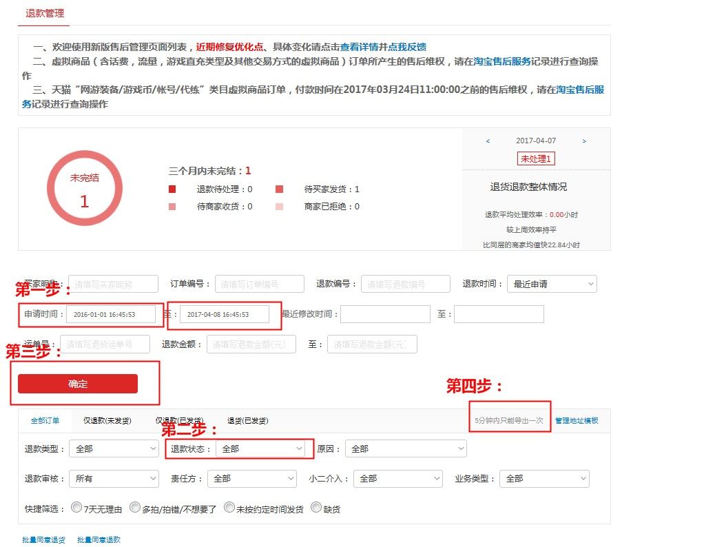 温馨提示:10月17日起,商家的子账号需要在主账号的授权下才具有导出退款明细的权限(若提示无导出权限,请您刷新页面申请权限)