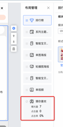 当您开启了店铺装修页面的数据可见按钮,就可以直接在装修页面查看您当前模块的数据