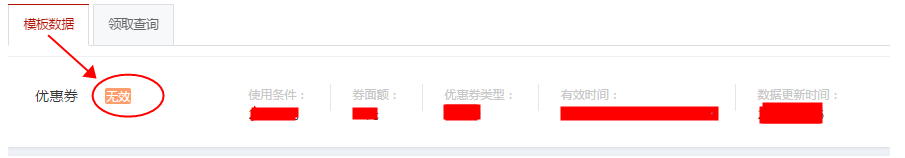 若优惠券模板数据显示无效,是因为只有在优惠券的有效时间内才会显示有效哦。如优惠券设置的有效时间为:2017-11-08 至 2017-11-10,即商家在2017-11-09 至 2017-11-11查看模板数据会显示有效(原因为数据更新时间T-1),其余时间均显示无效。