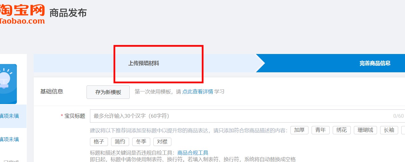 智能发布页,目前部分类目目前不会直接显示类目,可点击上传预填资料查看,