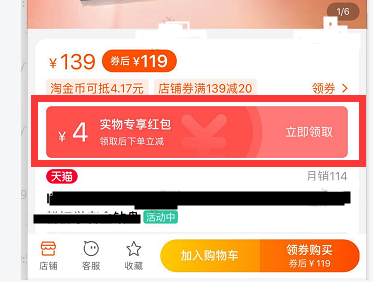 实物专享红包是平台出资红包,商家无法自主报名参与,是针对买家个性化展示哦!不影响商家最终的收入。