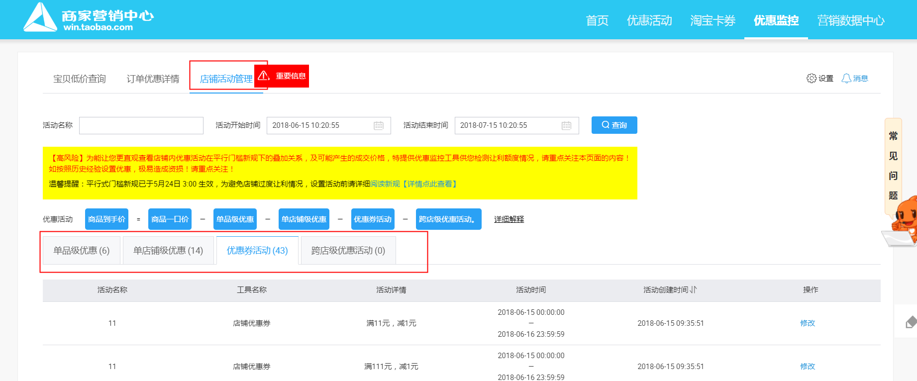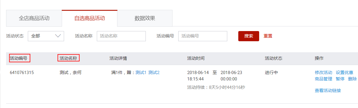 您也可以通过【卖家中心】-【营销中心】-【店铺营销工具】-【优惠监控】-【店铺活动管理】里通过活动名称操作查询哦