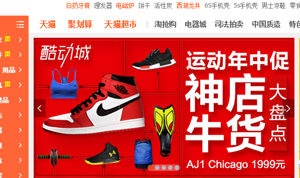 以近期的酷动城活动为例:通过首焦进入活动后,左侧能够看到主会场和分会场。【点此查看图例1、图例2】