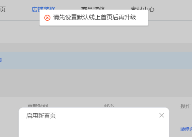关闭旧版旺铺为什么提示请先设置默认线上首页后再升级