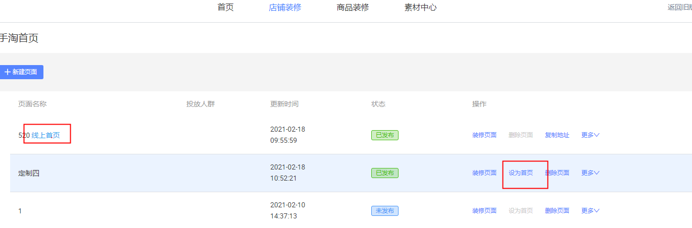 亲,您需要先将新版旺铺装修页面设置为首页后,再关闭旧版即可