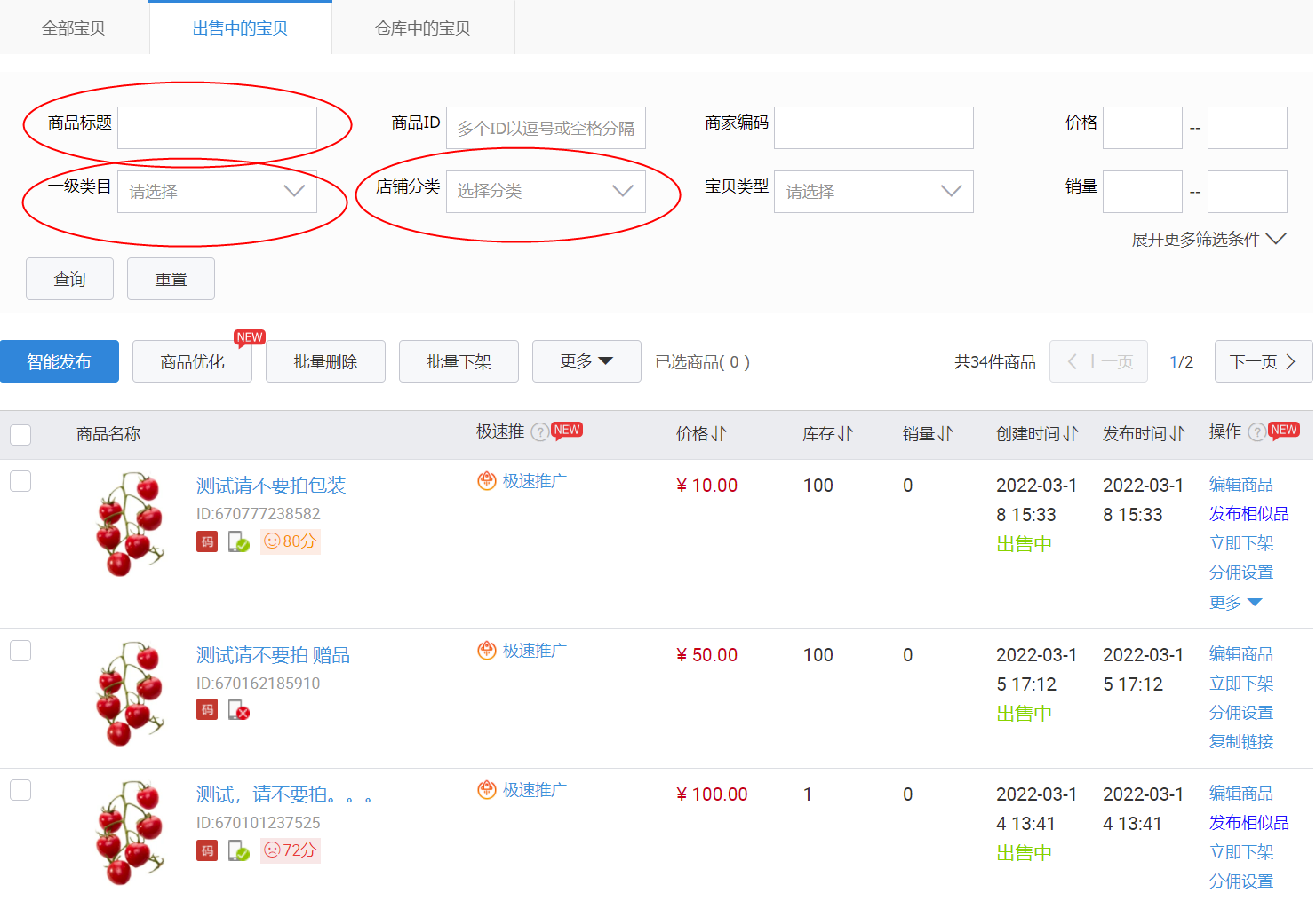 目前商品已发布成功或是上架状态,在出售中的宝贝找不到了,您可以通过全标题/关键词进行搜索,但不要带有特殊字符,如“/”。如您的宝贝总量很多,例如超过3000个,则翻页显示有可能不全,但实际上商品是都在的哦,不影响。您可以加筛选条件进行查看。