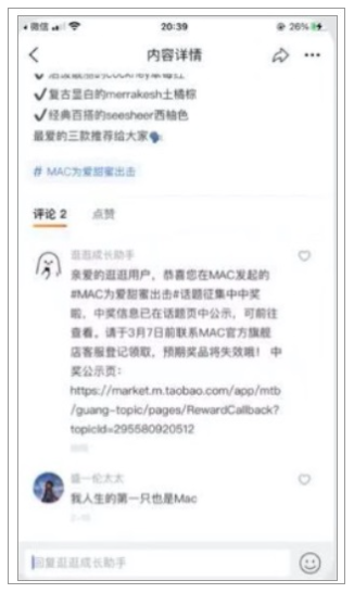 公示期结束后,平台将会在获奖用户在话题有奖活动结束前发布的最后一条精选内容下,以评论的方式发送获奖通知,用户可以在手机淘宝-消息-互动消息收到获奖评论通知(下图形式仅供参考)。为防止错过通知,请务必开启内容的评论功能。