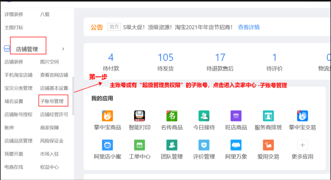 亲,子账号管理后台在逐步升级,后续会逐步切换到新后台使用,切换后,进入卖家中心-子账号管理会显示新后台页面,不支持返回旧版,请商家熟悉并使用新后台,若还未切换的新后台的商家,建议先关注,使用老后台即可。