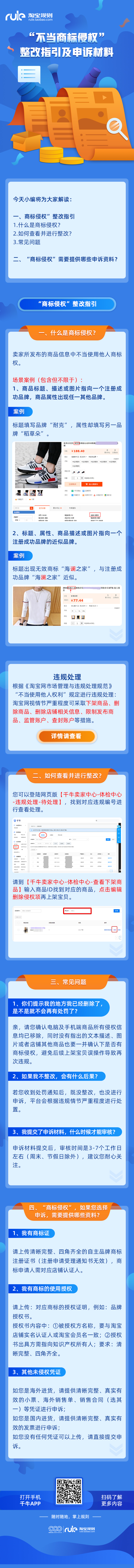 亲,平台会排查您的商品标题、描述或图片指向一个注册成功品牌,商品属性出现任一其他品牌。如存在这样的标题属性不一致的情况下,建议您及时进展整改一致,避免商品被处置删除。此通知也是为了商家可以尽快整改,如您已经整改完整或未出现标题属性不一致的情况可以忽略此通知。淘宝网关于商品品牌不一致治理公告可点此查看整改视频:点此查看 点击展开全文 转载请注明出处安可林文章网 » 我收到不当使用他人权利整改通知,我要怎么办?