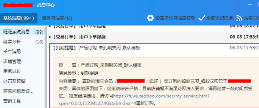 亲,花呗订购后,系统也会再次根据当前店铺和绑定的支付宝状态、店铺等级、开店时长、处罚记录、主营类目、信用记录等多维度综合进行校验,若发现相关维度存在问题,则会实时关闭您之前的订购,建议您反查,并再经营一段时间后再尝试订购哦。关闭消息提醒请到消息中心查看: