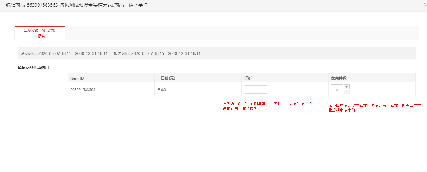 (3)商品成功报名后,将调取商品的全部库存,没有限购。