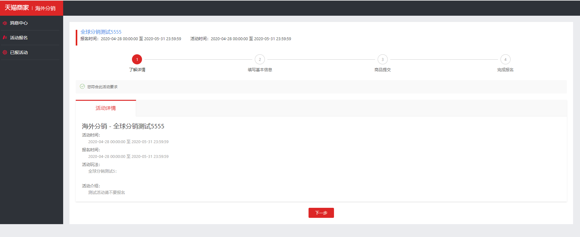 7.点击确认后下一步,完成报名