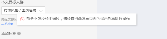发布微淘时提示“部分字段校验不通过,请检查当前发布页面的提示后再进行操作”