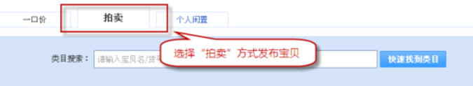 卖家中心—宝贝管理——发布宝贝,选择拍卖方式。