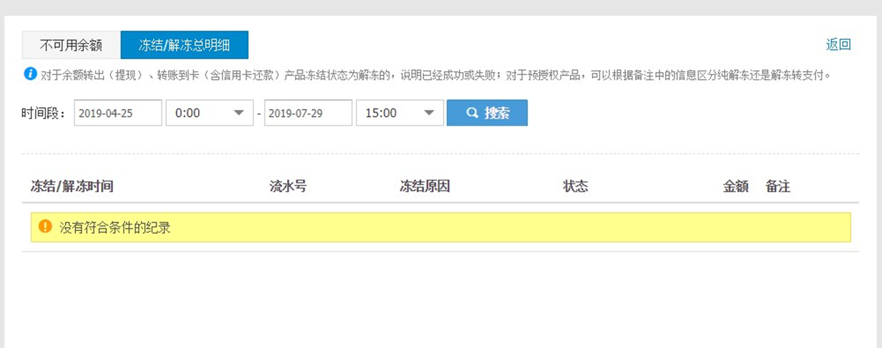 2、查询保底费用的解冻记录,建议您起始时间选择活动开团时间。
