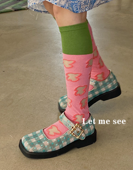 3.中筒袜:又叫及小腿袜,高于脚踝5cm以上,且膝盖以下的袜子