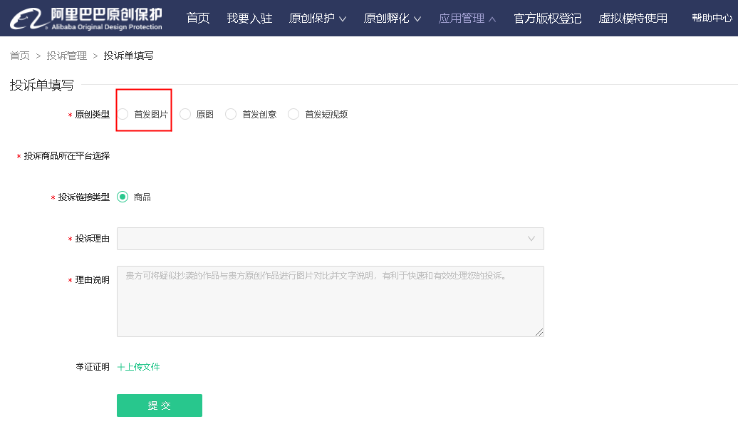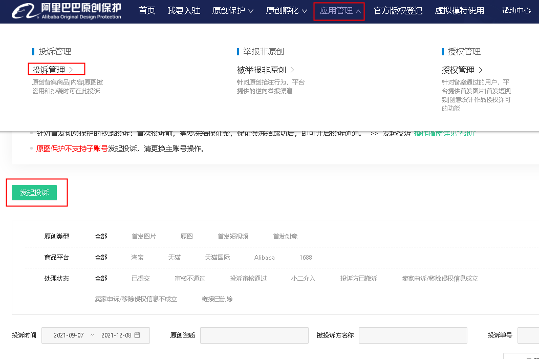 第一步:您可以登陆:原创保护平台-应用管理-投诉管理-发起投诉