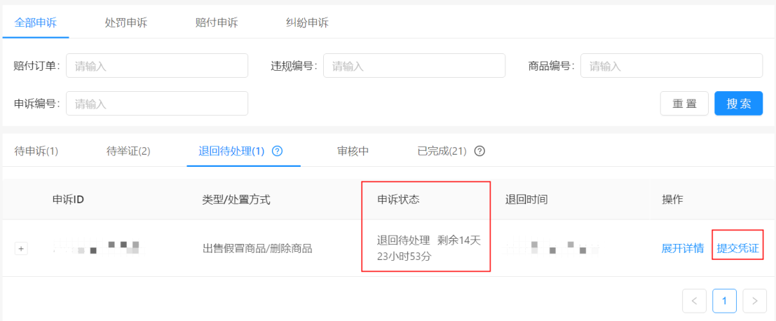 假货处罚申诉退回后,需在15天内重新点击“提交凭证”进行申诉,具体时效以系统通知为准,超时未申诉入口将关闭无法提交申诉。 点击展开全文 转载请注明出处安可林文章网 » 假货处罚申诉被退回后,申诉时间是多久?