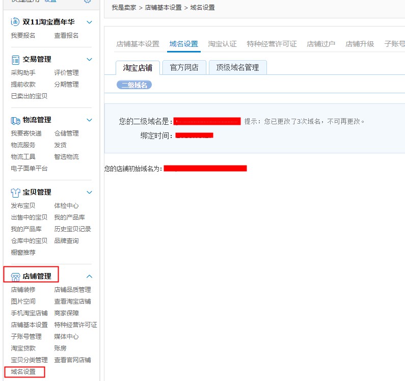 亲,二级域名可以通过以下路径进行修改哦,修改路径:【卖家中心】-【店铺管理】-【域名设置】-【二级域名】